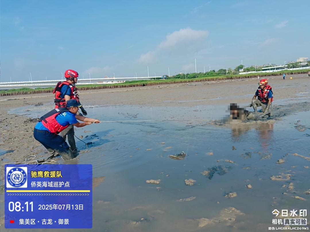 今天上午8點 廈門集美大橋橋頭海域灘涂 突發緊急事件 一女子深陷淤泥 火速救援 女子挖花蛤深陷淤泥 廈門救援隊拋救生圈施救 今天上午近8點 廈門馳鷹救援隊巡護隊...
